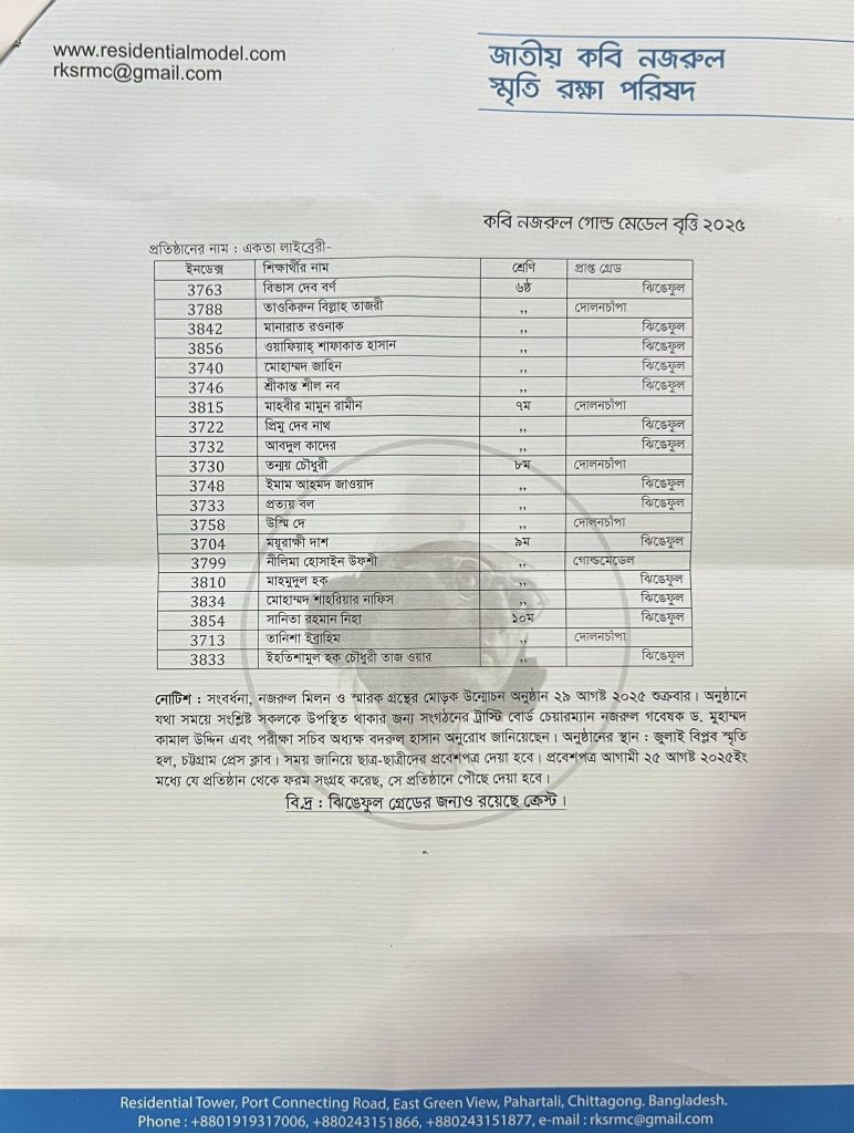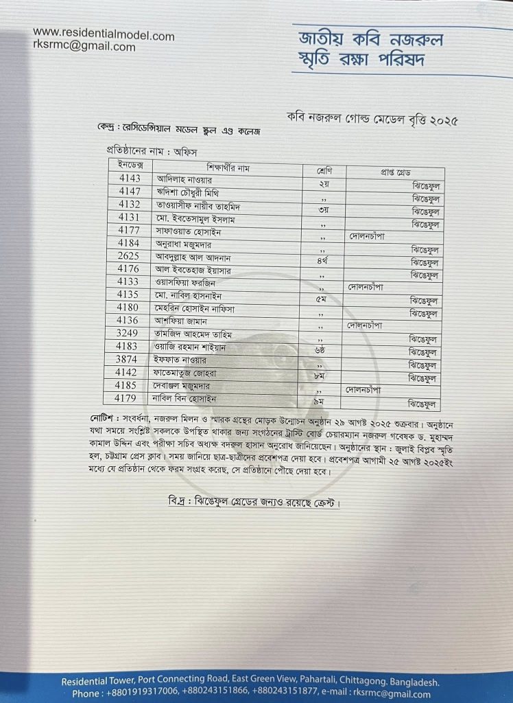 নোটিশ : বৃত্তিপ্রাপ্তদের সংবর্ধনা, নজরুল মিলন ও স্মারক গ্রন্থের মোড়ক উন্মোচন অনুষ্ঠান ২৯ আগষ্ট ২০২৫ শুক্রবার।