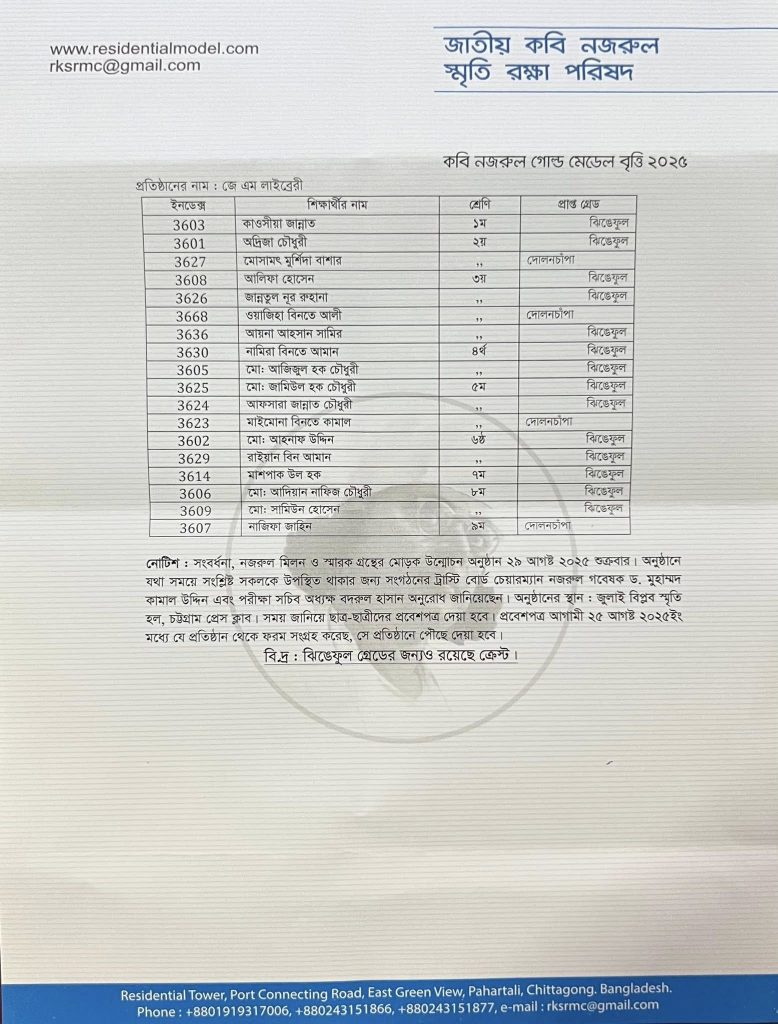 অনুষ্ঠানের স্থান : জুলাই বিপ্লব স্মৃতি হল, চট্টগ্রাম প্রেস ক্লাব, জামালখাঁন। সময় জানিয়ে ছাত্র-ছাত্রীদের প্রবেশপত্র দেয়া হবে যেখান থেকে ফরম নিয়েছেন সেই প্রতিষ্ঠানে। প্রবেশপত্র আগামী ২৫ আগষ্ট ২০২৫ইং মধ্যে যে প্রতিষ্ঠান থেকে ফরম সংগ্রহ করেছ, সে প্রতিষ্ঠানে পৌঁছে দেয়া হবে।